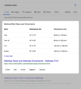 - Tables – This type of snippet provides a visual to help users analyze data for comparisons.